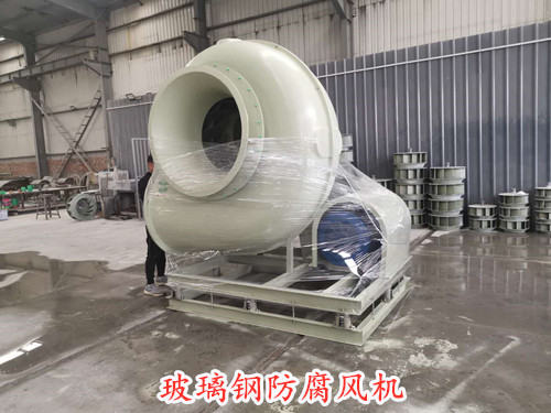即廢氣中含有微量的酸性成分,鹽酸、硫酸等。由于酸性成分少,濃度低,故而對風機的防腐能力要求一般。即采用常規的材料制作即可,如本公司生產的玻璃鋼離心式風機,標準規格是葉輪采用防腐能力較強的乙烯基樹脂制作,外殼、電機罩等則采用一般的不飽和樹脂制作即可